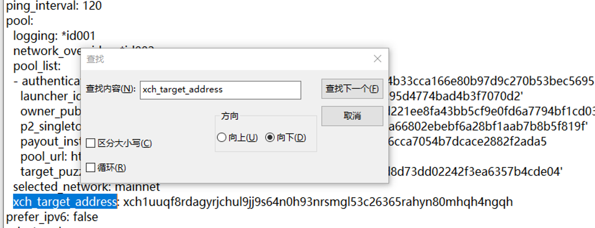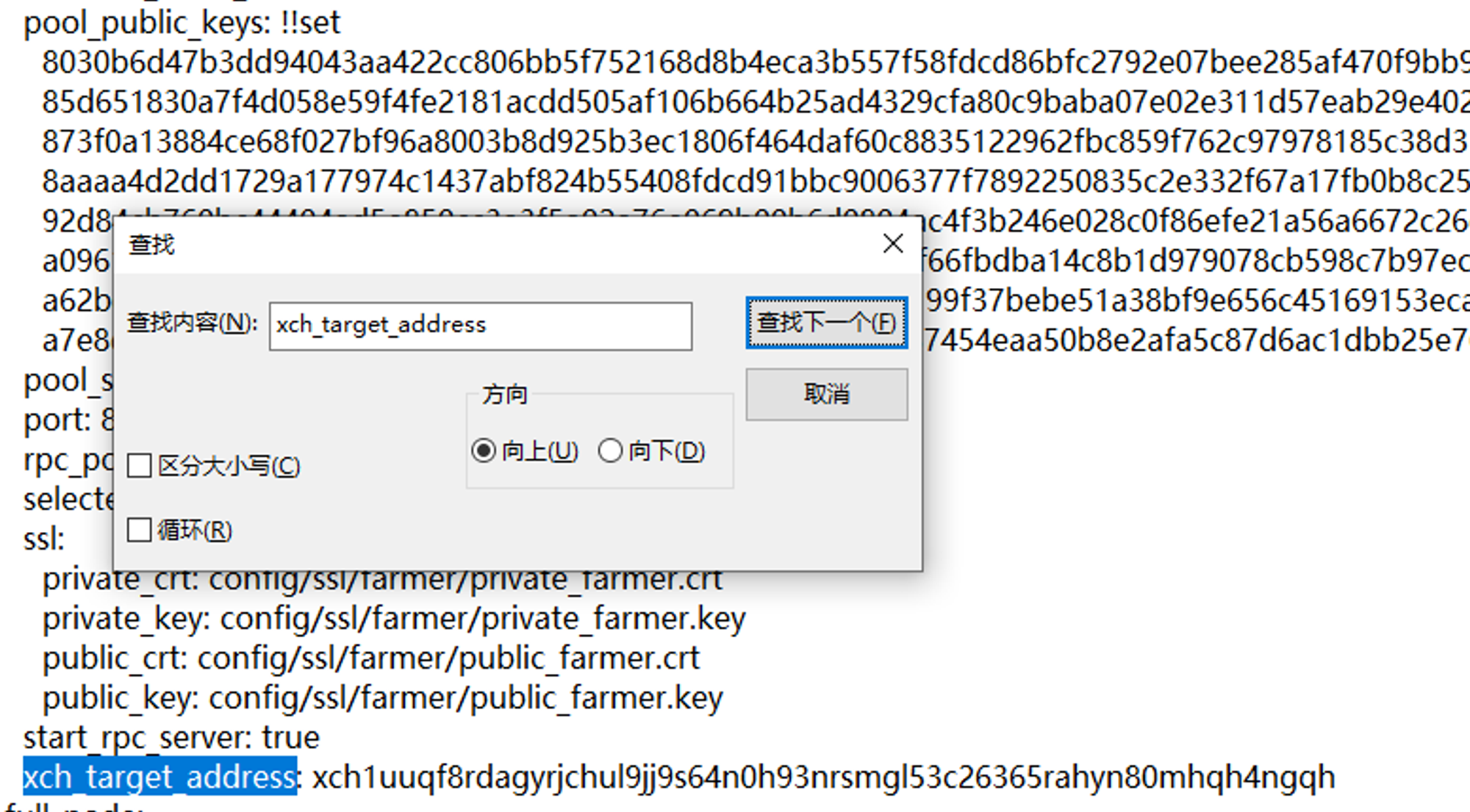 将配置文件中xch_target_address的值改成主节点的钱包地址(有2处需要修改)