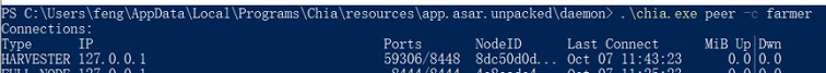 收割机的ID可以从客户端获取,也可以通过命令: chia.exe peer -c farmer 获取。