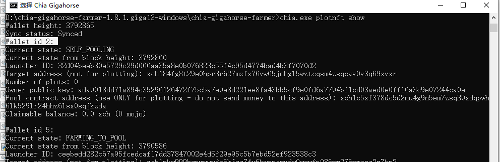 - 首先查看启动器信息,获取启动器的wallet id(这里的id是2):chia.exe plotnft show