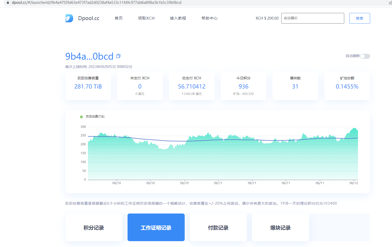 - 每个有效的工作证明(partial),都会获得相应难度的积分;每103400积分,换算为1PiB的有效算力;每24小时按照有效算力结算一次