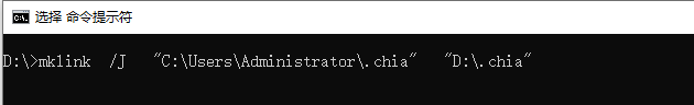 mklink /J "C:\Users\Administrator\.chia" "D:\.chia"